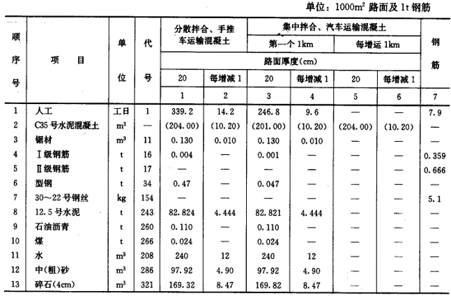 | 9.【案例1】 1.背景材料: 某水泥混凝土路面工程,其工程量為50000m ,分散拌合,手推車運送混凝土,路面厚度20cm。水泥混凝土路面施工預算定額(部分)如下表:2-28水泥混凝土路面工程內容:1)模板制作、安裝、拆除、修理、涂脫模劑;2)傳力桿及補強鋼筋制作安裝;3)混凝土配運料、拌合、運輸、澆筑、搗固、真空吸水、抹平、壓紋、養生;4)切縫、灌注瀝青脹縮絳。![]() 2.問題:(1)試計算該工程的勞動量。 (2)當工期要求為150d時,所需的勞動力數量是多少? |