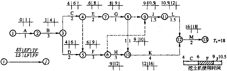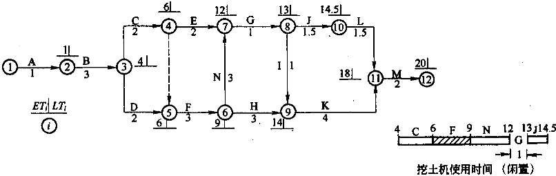 11.某水利水電工程項目的原施工進度網(wǎng)絡計劃(雙代號)如圖1F400000-1所示。該工程總工期為18個月。在上述網(wǎng)絡計劃中,工作C、F、J三項工作均為土方工程,土方工程量分別為7000m 、10000m 、6000m ,共計23000m ,土方單價為15元/m 。合同中規(guī)定,土方工程量增加超出原估算工程量25%時,新的土方單價可從原來的15元/m 下降13元/m 。合同約定每臺施工機械閑置1天為800元,每月以30天計;C、F、J實際工作量與計劃工作量相同。施工中發(fā)生如下事件: 事件1:施工中,由于施工單位施工設備調(diào)度原因,C、F、J工作需使用同一臺挖土機先后施工。 事件2:在工程按計劃進行4個月后(已完成A、B兩項工作的施工),項目法人提出增加一項新的土方工程N,該項工作要求在F工作結(jié)束以后開始,并在G工作開始前完成,以保證G工作在E和N工作完成后開始施工。根據(jù)施工單位提出并經(jīng)監(jiān)理機構(gòu)審核批復,該項N工作的土方工程量約為9000m ,施工時間需要3個月。事件3:經(jīng)監(jiān)理機構(gòu)批準,新增加的土方工程N使用與C、F、J工作同一臺挖土機施工 ![]() 圖1F400000-1 問題: (1)在不改變各工作歷時的情況下,發(fā)生事件1后,施工單位如何調(diào)整計劃,使設備閑置時間最少,且滿足計劃工期要求? (2)按事件2新增加一項新的土方工程N后,土方工程的總費用應為多少? (3)土方工程N完成后,施工單位提出如下索賠: ①增加土方工程施工費用13.5萬元; ②由于增加土方工程N后,使租用的挖土機增加了閑置時間,要求補償挖土機的閑置費用2.4萬元; ③延長工期3個月。 施工單位上述索賠是否合理?說明理由。 |