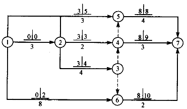 9.某設備安裝工程的雙代號網絡計劃如下圖所示,圖中已標出每項工作的最早開始時間和最遲開始時間,該計劃表明( )。![]() |