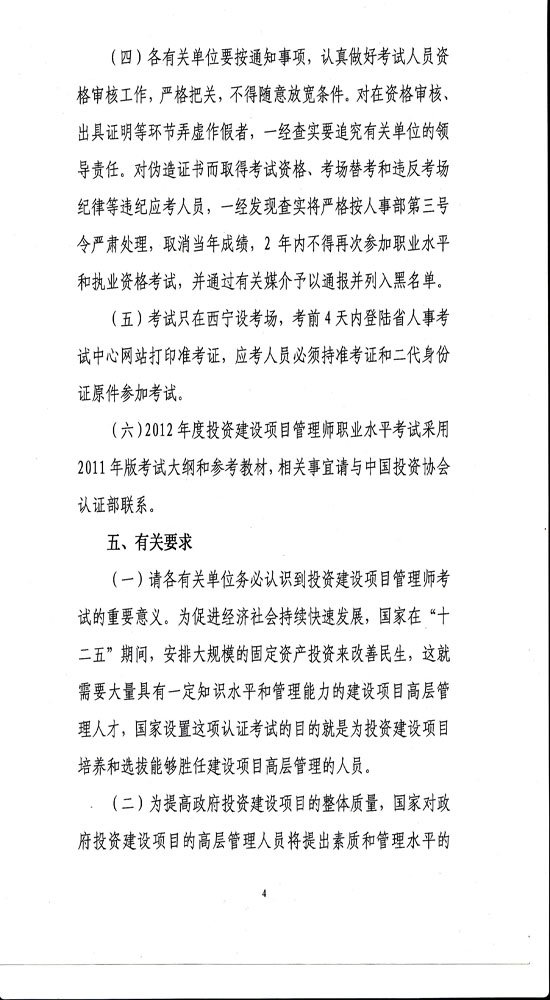 青海:2012年投資項目管理師職業(yè)水平考試報名工作的通知