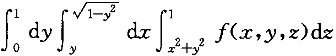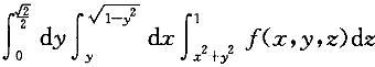 | 正確答案:C 解題思路:提示:確定Ω在xOy,平面上投影區域的圖形,寫出在直角坐標系下先z后x最后y的三次積分。 |