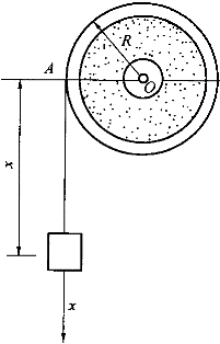 2.半徑R=10cm的鼓輪,由掛在其上的重物帶動而繞O軸轉動,如圖所示。重物的運動方程為x=100t (x以m計,t以s計)。則鼓輪的角加速度a的大小和方向是:![]() |