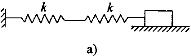 正確答案:B 解題思路:提示:首先按彈簧的串、并聯計算系統等效的彈簧剛度 ,然后代入周期的公式T=2π ![]() |