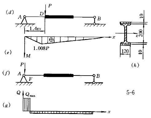 1.某簡易起重設(shè)備的吊車大梁如圖6(a)所示。梁AB由20a工字鋼制成,在中間一段的上下兩面焊上長度為2.2m,寬度為120mm,厚度為10mm的鋼板。已知材料的許用應(yīng)力[σ]=152MPa,[t]=95MPa。荷載P在全梁移動(dòng),則梁的容許荷載[P]為( )。![]() ![]() |