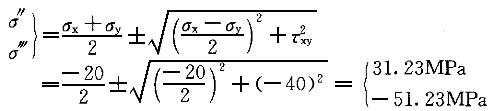正確答案:D 解題思路:解:圖示單元體的一對(duì)平面是主平面,其主應(yīng)力σ =60MPa。因?yàn)槠叫杏谥鲬?yīng)力σ′的面內(nèi)主應(yīng)力與σ′無關(guān)。此時(shí),可以應(yīng)用疊加原理,將該單元體簡化為二向應(yīng)力狀態(tài)與單向應(yīng)力狀態(tài)疊加。不考慮σ′的二向應(yīng)力狀態(tài)如圖8(b)所示。該二向應(yīng)力狀態(tài)的主應(yīng)力為 ![]() 考慮到σ′=60MPa,按σ >σ >σ 關(guān)系,單元體的主應(yīng)力為σ =60MPaσ =31.23MPaσ =-51.23MPa單元體的最大剪應(yīng)力 τ =σ -σ /3=60-(-51.23)/2=55.6MPa所以D的答案正確。若未考慮σ′=60MPa的影響,就得A的錯(cuò)誤答案。若未考慮σ >σ >σ 關(guān)系,就得 B的錯(cuò)誤答案。若未考慮σ ,σ 的影響,就得出C的錯(cuò)誤答案。 |
