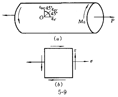 4.一鋼制圓軸受拉、扭組合荷載作用如圖9(a)所示,已知圓軸直徑d=20mm,材料彈性模量E=200GPa。如果采用直角應(yīng)變花在測(cè)定軸表面O點(diǎn)的應(yīng)變值:ε90°=96×10 ,ε45°=565×10 ,ε0°=320×10 ,則轉(zhuǎn)矩M 為( )。![]() |