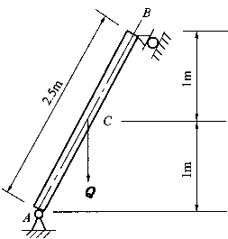 | 正確答案:A 解題思路:提示:首先求出壓桿BC的柔度λ=μl/l=1×300/(10/4)=120,查表得φ=0.209,再由N/φA≤[σ]算出軸力N=φA[σ],最后考慮AB桿的平衡,由軸力求出均布荷載q的允許值。 |