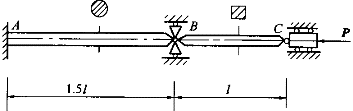 2.如圖所示結構中,AB段為圓截面桿,直徑d=80mm,A端固定,B端為球鉸連接,BC段為正方形截面桿,邊長a=70mm,C端亦為球鉸連接,兩桿材料相同,彈性模量E=206GPa,比例極限σ =20MPa,l=3m,穩(wěn)定安全系數n =2.5,則結構的許可荷載[P]為:![]() |