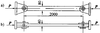 1.如圖所示壓桿的橫截面為矩形,h=80mm,b=40mm,桿長l=2m,材料為A3鋼,E=210GPa,σ =200MPa支承情況為:在正視圖a)的平面內相當于兩端鉸支,在俯視圖b)的平面內為彈性固定。采用μ=0.8,可求得此壓桿的臨界壓力為:![]() |