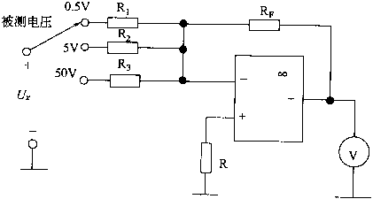 5.運(yùn)算放大器組成的電壓表電路如圖所示,已知輸出端所接電壓表滿量程為5V,且R =1MΩ。若要得到0.5V、5V、50V三種量程,R 、R 、R 的阻值應(yīng)分別為:![]() |