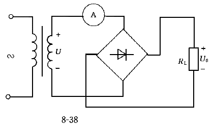 單相全波整流電路如圖38所示,已知:R =80Ω,U =110V![]() |