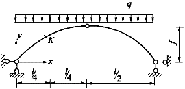 5.已知圖示三鉸拱的軸線方程為y=(4f/l )x(l-x),則x=l/4的截面K的彎矩為:![]() |