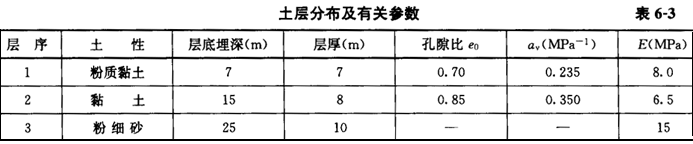 1.某城市當前地下水位在地表以下5m,由于抽取地下水,地下水位以2m/a的速率下降,地層的主要資料及有關參數的平均值如表6-3所示,第3層以下為不透水層,則10年后該城市的地面沉降量最接近( )。![]() |