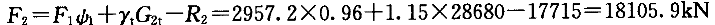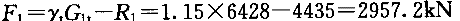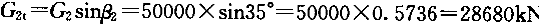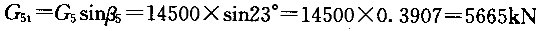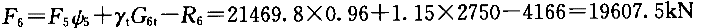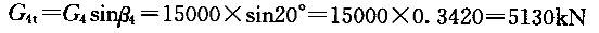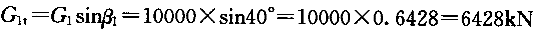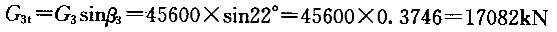 正確答案:1.C;2.A 解題思路:1.根據傳遞系數計算公式機![]() 可得: ![]() =cos(40°-35°)-sin(40°-35°)tancψz =0.9962-0.0872×0.3739≈0.96故選C。 2.根據公式 計算各滑塊的抗滑力:![]() =10000×cos40°×tan19°+18×100 =10000×0.766×0.344+1800 =4435kN ![]() =50000×cos35°×tan20.5°+20×120 =50000×0.8192×0.3739+2400 =17715kN ![]() =45600×cos22°×tan18.5°+18×100 =45600X0.9272×0.3346+1800 =15947kN ![]() 15000×cos20°×tan17°+15×80 =15000×0.9397×0.3057+1200 =5509kN ![]() =14500×cos23°×tan17°+15×90 =14500×0.9205×0.3057+1350 =5430kN ![]() =8900×cos18°×tan20.8°+19×50 =8900×0.9511×0.3799+950 =4166kN 根據公式 計算各滑塊的下滑分力:![]() ![]() ![]() ![]() ![]() ![]() 根據公式 計算滑坡推力:![]() ![]() [JZ205_218_1_4.gif ] ![]() ![]() ![]() 所以,滑坡最終推力F=F =19607.5kN;故選A。 |