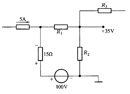 5.在圖所示電路中,若15Q電阻上的壓降為30V,極性如圖所示,電阻R 的值應為( )。![]() |