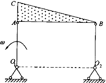 4.一機構由桿件O A、O B和三角形板ABC組成。已知O A桿轉動的角速度為ω(逆時針向),O A=O B=r,AB=L,AC=h。則在圖示位置時,C點的速度為:![]() |