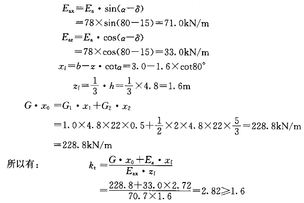 | 4.如果作用在擋土墻的上的主動(dòng)土壓力Ea=78kN/m,則擋土墻的抗傾覆穩(wěn)定性( )。 |