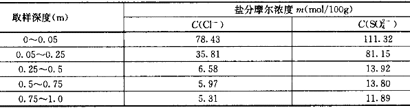 5.在一鹽漬土地段,地表1.0m深度內分層取樣,化驗含鹽成分如下表:按《巖土工程勘察規范》(GB50021-2001)計算該深度范圍內取樣厚度加權平均鹽分比值D1=[ ],并判定該鹽漬土應屬于下列( )種鹽漬土。![]() |