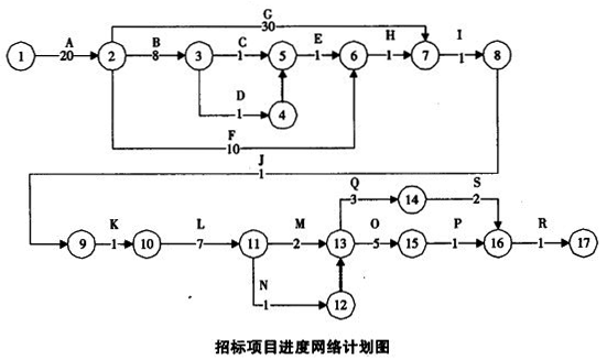 1.(15分)某依法必須招標(biāo)的工程建設(shè)項(xiàng)目,采用公開招標(biāo)(資格后審)方式組織工程總承包招標(biāo)。![]() 注:圖中所標(biāo)注時(shí)間為日歷日,各環(huán)節(jié)時(shí)間滿足相關(guān)要求,其中: A.編制招標(biāo)文件,發(fā)布招標(biāo)公告; B.發(fā)售招標(biāo)文件; C.組織一批投標(biāo)人踏勘現(xiàn)場(chǎng); D.組織另一批投標(biāo)人踏勘現(xiàn)場(chǎng); E.組織投標(biāo)預(yù)備會(huì); F.投標(biāo)人提出招標(biāo)文件需要澄清的問題; G.投標(biāo)人編寫和提交投標(biāo)文件; H.發(fā)出招標(biāo)文件澄清與修改; I.投標(biāo)人和行政監(jiān)督機(jī)構(gòu)審查投標(biāo)人營(yíng)業(yè)執(zhí)照和安全生產(chǎn)許可證,據(jù)此決定進(jìn)入開標(biāo)的投標(biāo)文件; J.開標(biāo); K.評(píng)標(biāo)委員會(huì)制定評(píng)標(biāo)辦法; L.考查各投標(biāo)人,將考查結(jié)果作為評(píng)標(biāo)依據(jù); M.評(píng)標(biāo); N.招標(biāo)人向投標(biāo)人發(fā)出通知,要求投標(biāo)人進(jìn)一步澄清、說明有關(guān)事項(xiàng); O.公示中標(biāo)結(jié)果; P.發(fā)出中標(biāo)通知書; Q.就合同非實(shí)質(zhì)性內(nèi)容進(jìn)行談判; R.訂立合同; S.中標(biāo)人進(jìn)場(chǎng)建設(shè)。 問題: (1)按照招標(biāo)人編制的網(wǎng)絡(luò)計(jì)劃,確定其關(guān)鍵路徑,并確定按照該計(jì)劃完成全部招標(biāo)工作所需的時(shí)間。 (2)逐一指出上述網(wǎng)絡(luò)計(jì)劃中的不妥之處,說明理由。 |