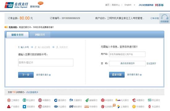 所示各家銀行的支付頁面不相同,請按照各銀行的提示進行相關(guān)操作。