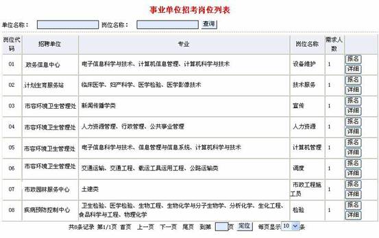 (3)通過首頁左欄“報名導航”下的"招聘崗位查詢",查詢相關(guān)招聘崗位。