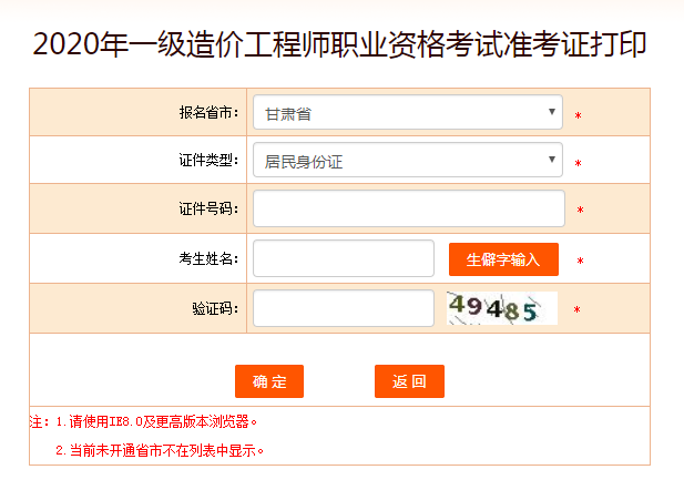 好消息!2020年中國(guó)人事考試網(wǎng)一級(jí)造價(jià)師工程師甘肅地區(qū)準(zhǔn)考證打印入口開通了,請(qǐng)廣大考生進(jìn)入中國(guó)人事考試網(wǎng)打印。