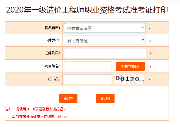 好消息!2020年中國人事考試網一級造價師工程師內蒙古地區準考證打印入口開通了,請廣大考生進入中國人事考試網打印。