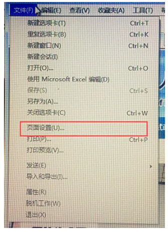 ②點(diǎn)擊IE瀏覽器上方“文件”菜單中的“頁面設(shè)置”。