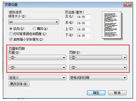 ③在彈出的頁面設(shè)置對(duì)話框中刪除頁眉、頁腳。
