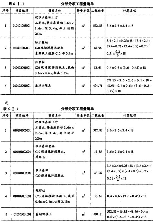 表6.Ⅲ.2 分部分項工程量清單綜合單價計算表(1)
