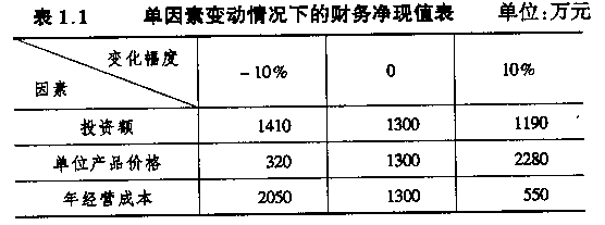 | 1.某建設項目計算期10年,其中建設期2年。項目建設投資(不含建設期貸款利息)1200萬元,第1年投入.500萬元,全部為投資方自有資金;第2年投入700萬元,其中500萬元為銀行貸款,貸款年利率6%。貸款償還方式為:第3年不還本付息,以第3年末的本息和為基準,從第4年開始,分4年等額還本、當年還清當年利息。 項目流動資金投資400萬元,在第3年和第4年等額投入,其中僅第3年投入的100萬元為投資方自有資金,其余均為銀行貸款,貸款年利率8%,貸款本金在計算期最后一年償還,當年還清當年利息。 項目第3年的總成本費用(含貸款利息償還)為900萬元,第4年至第10年的總成本費用均為1500萬元,其中,第3年至第10年的折舊費均為100萬元。 項目的投資額、單位產品價格和年經營成本在初始值的基礎上分別變動±10%時對應的財務凈現值的計算結果見表1.1。 計算結果除答題紙表1.2保留三位小數外,其余均保留兩位小數。 問題 1.計算項目各年的建設投資貸款和流動資金貸款還本付息額,并將計算結果填入答題紙表1.2和表1.3。 2.列式計算項目第3年、第4年和第10年的經營成本。 3.根據表1.1的數據列式計算各因素的敏感系數,并對3個因素的敏感性進行排序。 ![]() 4.根據表1.1中的數據繪制單因素敏感性分析圖,列式計算并在圖中標出單位產品價格變動的臨界點。 |