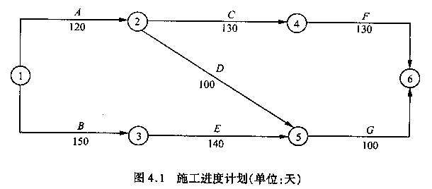 1.某施工單位與建設(shè)單位按《建設(shè)工程施工合同(示范文本)》簽訂了固定總價(jià)施工承包合同,合同工期290天,合同總價(jià)5000萬元。合同中約定按建標(biāo)[2003]206號文綜合單價(jià)法計(jì)價(jià)程序計(jì)價(jià),其中間接費(fèi)費(fèi)率為20%,規(guī)費(fèi)費(fèi)率為5%,取費(fèi)基數(shù)為人工費(fèi)與機(jī)械費(fèi)之和。施工前施工單位向工程師提交了施工組織設(shè)計(jì)和施工進(jìn)度計(jì)劃(圖4.1)![]() 該工程在施工過程中出現(xiàn)了如下事件: (1)因地質(zhì)勘探報(bào)告不詳,出現(xiàn)圖紙中未標(biāo)明的地下障礙物,處理該障礙物導(dǎo)致工作A持續(xù)時(shí)間延長10天,增加人工費(fèi)2萬元、材料費(fèi)4萬元、機(jī)械費(fèi)3萬元。 (2)基坑開挖時(shí)因邊坡支撐失穩(wěn)坍塌,造成工作B持續(xù)時(shí)間延長15天,增加人工費(fèi)1萬元、材料費(fèi)1萬元、機(jī)械費(fèi)2萬元。 (3)因不可抗力而引起施工單位的供電設(shè)施發(fā)生火災(zāi),使工作C持續(xù)時(shí)間延長10天,增加人工費(fèi)1.5萬元、其他損失費(fèi)5萬元。 (4)結(jié)構(gòu)施工階段因建設(shè)單位提出工程變更,導(dǎo)致施工單位增加人工費(fèi)4萬元、材料費(fèi)6萬元、機(jī)械費(fèi)5萬元,工作E持續(xù)時(shí)間延長30天。 (5)因施工期間鋼材漲價(jià)而增加材料費(fèi)7萬元。 針對上述事件,施工單位按程序提出了工期索賠和費(fèi)用索賠。 問題 1.按照圖4.1的施工進(jìn)度計(jì)劃,確定該工程的關(guān)鍵線路和計(jì)算工期,并說明按此計(jì)劃該工程是否能按合同工期要求完工? 2.對于工過程中發(fā)生的事件,施工單位是否可以獲得工期和費(fèi)用補(bǔ)償?分別說明理由。 3.施工單位可以獲得的工期補(bǔ)償是多少天?說明理由。 4.施工單位租賃土方施工機(jī)械用于工作A、B,日租金為1500元/天,則施工單位可以得到的土方租賃機(jī)械的租金補(bǔ)償費(fèi)用是多少?為什么? 5.施工單位可得到的企業(yè)管理費(fèi)補(bǔ)償是多少? |