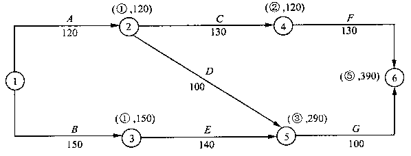 | 正確答案: 問題1采用標(biāo)號法計(jì)算如下: ![]() 關(guān)鍵路線:①→③→⑤→⑥,計(jì)算工期為390天,按此計(jì)劃該工程可以按合同工期要求完工。 問題2 事件(1):不能獲得工期補(bǔ)償,因?yàn)楣ぷ鰽的延期沒有超過其總時(shí)差;可以獲得費(fèi)用補(bǔ)償,因?yàn)閳D紙未標(biāo)明的地下障礙物屬于建設(shè)單位風(fēng)險(xiǎn)的范疇。 事件(2):不能獲得工期和費(fèi)用補(bǔ)償,因?yàn)榛舆吰轮问Х€(wěn)坍塌屬于施工單位施工方案有誤,應(yīng)由承包商承擔(dān)該風(fēng)險(xiǎn)。 事件(3):能獲得工期補(bǔ)償,應(yīng)由建設(shè)單位承擔(dān)不可抗力的工期風(fēng)險(xiǎn);不能獲得費(fèi)用補(bǔ)償,因不可抗力發(fā)生的費(fèi)用應(yīng)由雙方分別承擔(dān)各自的費(fèi)用損失。 事件(4):能獲得工期和費(fèi)用補(bǔ)償,因?yàn)榻ㄔO(shè)單位工程變更屬建設(shè)單位的責(zé)任。 事件(5):不能獲得費(fèi)用補(bǔ)償,因該工程是固定總價(jià)合同,物價(jià)上漲風(fēng)險(xiǎn)應(yīng)由施工單位承擔(dān)。 問題3 施工單位可獲得的工期延期補(bǔ)償為30天,因?yàn)榭紤]建設(shè)單位應(yīng)承擔(dān)責(zé)任或風(fēng)險(xiǎn)的事件:(1)工作A延長10天;(3)工作C延長10天;(4)工作E延長30天,新的計(jì)算工期為420天,420-390=30(天)。 問題4 施工單位應(yīng)得到10天的租金補(bǔ)償,補(bǔ)償費(fèi)用為10天×1500元/天=1.5萬元,因?yàn)楣ぷ鰽的延長導(dǎo)致該租賃機(jī)械在現(xiàn)場的滯留時(shí)間增加了10天,工作B不予補(bǔ)償。 問題5 施工單位可以得到的企業(yè)管理費(fèi)用補(bǔ)償計(jì)算如下:20%-5%=15%(2+4+3+5)×15%=2.1(萬元)。 |