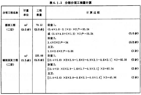 | 正確答案: Ⅰ.土建工程 問題1. ![]() 問題2:(12分) ![]() 問題3:(12分) ![]() ![]() Ⅱ.管道安裝工程 問題1. 寫出下列分部分項清單項日工程量的計算式: 1.管道DN300工程量的計算式: (940-520)+2×3.5=420+7=427(m) (1.5分) 2.管道DN150工程量的計算式: (400-305)+1=96(m) 3.管道DN100工程量的計算式: (528-305+2×2.5)+(528-400-1)+(940-935)×2=228+127+10=365(m) (2分) 4.管道支架制作安裝工程量的計算式: (427÷7×16)+(96÷6×15)+(365÷5×12)=976+240+876=2092(kg) (2分) ![]() ![]() 問題2. 各有關項目的計算過程; 1.Φ1020×6碳鋼板直管制作工程量。 5000×0.15×1.04=780(t)(1.5分) 2.制作碳鋼板直管前,需對成卷碳鋼板進行開卷與平直的工程量。 780×1.05=819(t) (1分) 3.業主應供應標準成卷板材的數量及其費用。 標準成卷板材的數量: 819×(1+3%)=843.57(t) (1分) 標準成卷板材的費用:843.57×4800=4049136(元) (1分) 4.承包商應向業主計取擴談項碳鋼板直管制作分部分項工程量清單費用數額; 5320536-4049136=1271400(元) (1分) ![]() 1.電氣安裝工程 問題1 1.鋼管Φ25工程量計算: 10+7+(0.2+0.1)×2+(0.2+0.3+0.2)×2=19(m) (2分) 2.鋼管Φ40工程量計算: 8+12+(0.2+0.1)×2+(0.2+0.3+0.2)×2=22(m) (2分) 3.電纜YJV4×2.5工程量計算: 10+7+(0.2+0.1)×2+(0.2+0.3+0.2)×2=19(m) (1.5分) 4.電纜YJV4×16工程量計算: 8+12+(0.2+0.1)×2+(0.2+0.3+0.2)×2=22(m) (1.5分) 5.電纜橋架200×100工程量計算: 22+[3-(2+0.1)]×2=23.8(m) (2分) 6.電纜YJV4×50工程量計算: 22+[3-(2+0.1)]×2=23.8(m) (1.5分) ![]() ![]() 問題2:(20.5分) ![]() ![]() ![]() 備注:在表6.Ⅲ.3中: ![]() |