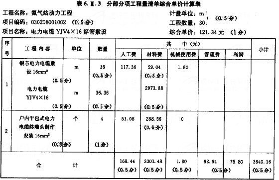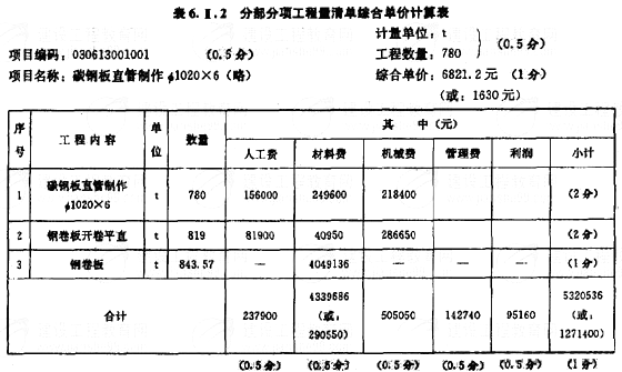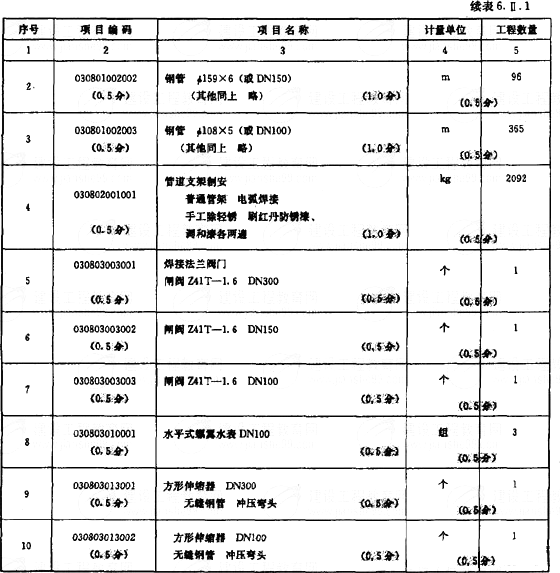 | 1.(40分) 本試題分三個專業(Ⅰ土建工程、Ⅱ工業蕾道安裝工程、Ⅲ電氣安裝工程),請任選其中一題作答。若選作多題,按所答的第一題(卷面順序)計分。 Ⅰ.土建工程 某小高層住宅樓建筑部分設計如圖6.I所示,共12層。每層層高均為3米,電梯機房與樓梯間部分凸出屋面。墻體除注明者外均為200mm厚加氣混凝土墻.軸線位于墻中。外墻采用50mm厚聚苯板保溫。樓面做法為20mm厚水泥砂漿抹面壓光。樓層鋼筋混凝土板厚100mm,內墻做法為20mm厚混合砂漿抹面壓光。為簡化計算首層建筑面積按標準層建筑面積計算.陽臺為全封閉陽臺,⑤和⑦軸上混凝土柱超過墻體寬度部分建筑面積忽略不計,門窗洞口尺寸見表6.I.1,工程做法見表6.I.2. ![]() ![]() 問題: 1.依據《建筑工程建筑面積計算規范》(GB/T 50353-2005)的規定,計算小高層住宅樓的建筑面積。 將計算過程、計量單位及計算結果填入答題紙表6.I.1“建筑面積計算”。 2.依據《建筑工程工程量清單計價規范》附錄B的工程量計算規則,計算小高層住宅樓二層臥室1、臥室2、主衛的樓面工程量以及墻面工程量.將計算過程、計量單位及計算結果按要求填入答題紙表6.I.2“分部分硬工程量計算”。 3.結合圖紙及表6.I.2“工程做法”進行分部分項工程量清單的項目特征描述,將描述和分項計量單位填入答題紙表6.I.3“分部分項工程量清單”。 (計算結果均保留兩位小數。) ![]() ![]() Ⅱ.管道安裝工程 1.某住宅區室外熱水管網布置如圖6.Ⅱ所示。 管網部分分部分項工程量清單項目的統一編碼見下表: ![]() 2.有一輸氣管線工程需用Φ11020×6的碳鋼板卷管直管,按管道安裝設計施工圖示直管段凈長度(不含閥門、管件等)共5000m,采用埋弧自動焊接。所用鋼材均由業主供應標準成卷鋼材。某承包商承擔了該項板卷管直管的制作工程,板卷管直管制作的工料機單價和相關要求說明如下: ![]() 注:1.Φ1020×6的碳鋼板卷管直管重量按150kg/m計; 2.按照以下規定:碳鋼板卷管安裝的損耗率為4%。每制作1t的板卷管直管工程量耗用鋼板材料1.05t;鋼卷板開卷與平直的施工損耗率為3%; 3.管理費、利潤分別按人工費的60%、40%計。 問題: 1.將各項管道和管道支架制作安裝清單項目工程量的計算過程,分別寫在答題紙相應位置。根據《建設工程工程量清單計價規范》的有關規定,編制如圖6.Ⅱ所示管網系統的分部分項工程量清單項目,將結果填入答題紙表6.Ⅱ.1“分部分項工程量清單表”第2、3、4、5欄內。 2.在答題紙相應位置寫出答題紙中要求的有關項目的計算過程: (1)Φ1020×6碳鋼板直管制作工程量; (2)制作碳鋼板直管前,需對成卷碳鋼板進行開卷與平直的工程量; (3)發包人所供應標準成卷鋼材的數量及其費用; (4)承包人應該向發包方計取的該項鋼板卷管制作分部分項工程量清單費用數額。依據《建設工程工程量清單計價規范》《全國統一安裝工程預算定額》的有關的規定,計算出Φ1020×6碳鋼板直管制作(清單項目的統一編碼為030613001)的分部分項工程量清單綜合單價,將相關數據填入答題紙表 6.Ⅱ.2“分部分項工程量清單綜合單價計算表”中。 (以上計算結果保留兩位小數。) ![]() 說明 1.本圖所示為某住宅小區室外熱水管網平面布置圖.該管道系統工作壓力為1.0MPa.熱水溫度為95℃.圖中平面尺寸均以相對坐標標注.單位以m計,詳圖尺寸以mm計。 2.管道敷設管溝(高600mm×寬800mm)內,管道均采用20#碳鋼無縫鋼管,彎頭采用成品沖壓彎頭、異徑管,三通現場挖眼連接,管道系統全部采用手工電弧焊接。 3.閘閥型號為Z41H-1.6,止回閥型號為H41H-1.6.水表采用水平螺翼式法蘭連接,管網所用法蘭均采用碳鋼平焊法蘭連接. 4.管道支架為型鋼橫擔.管座采用碳鋼板現場制作,Φ325×8管道每7m設一處,每處重量為16kg;Φ159×6管道每6m設一處,每處重量為15kg;Φ108×5管道每5m設一處。每處重量為12kg.其中施工損耗率為6%. 5.管道安裝完畢用水進行水壓試驗和消毒沖洗,之后管道外壁進行除銹,刷紅丹防銹漆二遍。外包巖棉管殼(厚度為60mm)作絕熱層。外纏鋁箔作保護層。 6.管道支架進行除銹后,均刷紅丹防銹漆、調和漆各二遍。 Ⅲ.電氣安裝工程 某氮氣站動力安裝工程如圖6.Ⅲ所示: 1.PD1、PD2均為定型動力配電箱,落地式安裝,基礎型鋼用10#槽鋼制作.其重量為10kg/m. 2.PD1至PD2電纜沿橋架敷設-其余電纜均穿鋼管敷設.埋地鋼管標準高為-0.2m.埋地鋼管至動力配電箱出口處高出地坪+0.1m. 3.4臺設備基礎標高均為+0.3m.至設備電機處的配管管口高出基礎面0.2m,均連接1根長0.8m同管徑的金屬軟管。 4.計算電纜長度時不計算電纜敷設弛度、波形彎度和交叉的附加長度,連接電機處,出管口后電纜的預留長度為1m,電纜頭為戶內干包式,其附加長度不計。 5.電纜橋架(200×100)的水平長度為22m. 6.表中數據為計算該動力安裝工程的相關費用: ![]() 管理費和利潤分別按人工費的55%和45%計。 分部分項工程量清單的統一編碼為: ![]() 問題: 1.根據圖示內容和《建設工程工程量清單計價規范》的規定,計算相關工程量和編制分部分項工程量清單。將配管、電纜敷設和電纜橋架工程量的計算式填入答題紙上的相應位置,并填寫答題紙表6.Ⅲ。1 “分部分項工程量清單”。 2.假設電力電統YJV4×16穿管敷設的清單工程量為30m.依據上述相關費用數據計算配電箱(落地式安裝)和電力電纜YJV4×16穿管敷設二個項目的綜合單價,并分別填入答題紙表6.Ⅲ