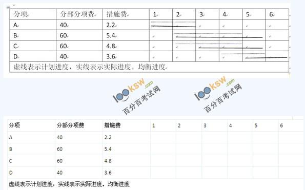 工程有4各分項(xiàng),其中分項(xiàng)工程費(fèi)用200萬(wàn)元,專業(yè)措施費(fèi)16萬(wàn)元,安全文明施工費(fèi)6萬(wàn)元,計(jì)日工3萬(wàn)元,暫列金12萬(wàn)元,專業(yè)分包特種門暫估價(jià)30萬(wàn)元,總承包服務(wù)費(fèi)按專業(yè)分包5%計(jì)算。綜合規(guī)費(fèi)稅金7%。各各分項(xiàng)進(jìn)度如下: