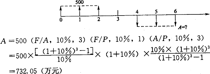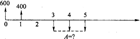 正確答案:B 解題思路:根據(jù)題意繪制現(xiàn)金流量圖:![]() 則A=[600×(1+8%) +400×(1+8%)]×(A/P,8%,3)=439.19(萬(wàn)元) |