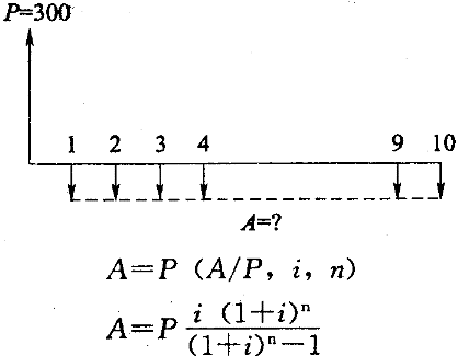 正確答案:B 解題思路:根據(jù)題目給出的條件,畫現(xiàn)金流量圖:![]() 將數(shù)據(jù)代入后,i=3.92%,A=36.85萬(wàn)元。關(guān)于等值計(jì)算考核點(diǎn),關(guān)鍵是理解等值計(jì)算的6個(gè)公式和有效利率與名義利率的概念與換算關(guān)系,并能靈活運(yùn)用。歷年在該考核點(diǎn)的考核形式萬(wàn)變不離其宗,考生可以針對(duì)本考核點(diǎn)多做一些練習(xí)題,以加快做題速度。 |