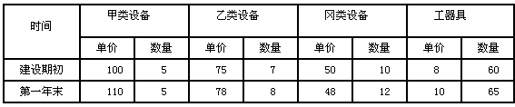 4.某工程在建設期初預計和建設期第一年末實際發生的設備、工器具購置情況如下表所示。與建設期初相比,第一年末的設備、工器具價格指數為( )。![]() |