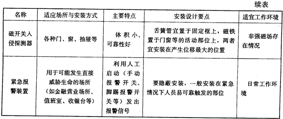 正確答案:D 解題思路:這道題的考點是防盜報警系統(tǒng)常用探測器的種類。防盜報警系統(tǒng)常用探測器的種類、適用場所、主要特點及安裝方式等如下表所示。