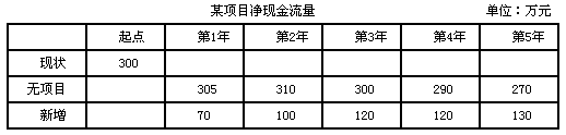 1.某改、擴建項目凈現(xiàn)金流量的數(shù)據(jù)見表,則第5年的增量數(shù)據(jù)是( )萬元。![]() |