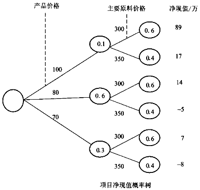 | 4.某項目的產品價格可能出現三種狀態值,分別為70元/t,80元/t和100元/t,經專家估計,各種狀態的可能性為30%,60%,10%,則產品價格預測的方差為( )。 |