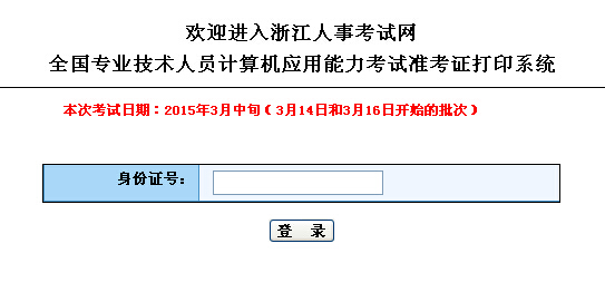 2015年浙江職稱計算機考試準考證打印入口開通