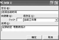2.單擊“視圖→工具欄→窗體”菜單項,調出“窗體”工具欄,然后單擊“窗體”工具欄上的“按鈕”,接著在單元格B2中拖動鼠標繪制一個按鈕,Excel將自動打開“指定宏”對話框,點選其中的“返回當前時間”宏,并單擊“確定”按鈕(如圖3)。