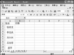 首先要進行的工作當然就是新建工作簿,在工作表中輸入姓名、日期,制訂考勤表的基本框架。