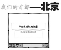 這種思路雖然比較簡單,但操作起來很繁瑣,而且完成后我們會發現,設計出來的幻燈片結構混亂,很容易出錯,尤其是不易修改,如果要更換圖片,就得重新進行“動作設置”。那么有沒有更簡便的方法呢?經過摸索,我終于找到了解決問題的好方法:只需在幻燈片中插入PowerPoint演示文稿對象就可以了。具體方法以語文課件《北京》中的一張幻燈片為例(效果如圖1)。