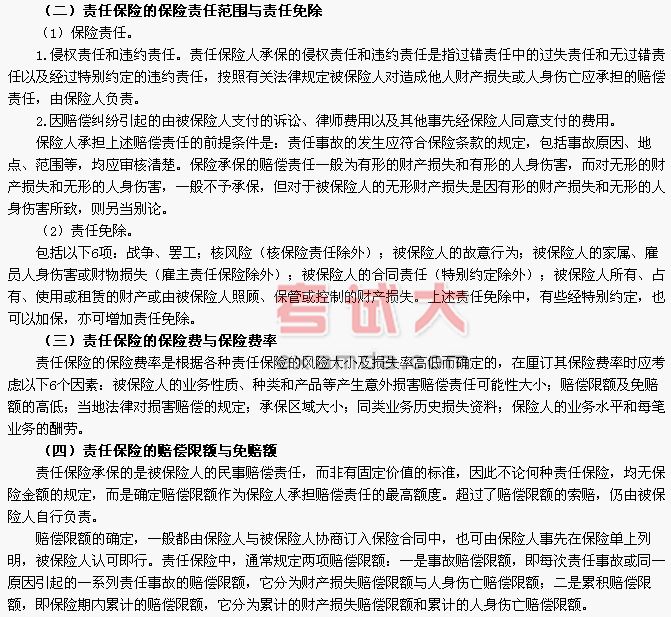 1.責任保險產生和發展的基礎是健全和完善的法律制度。