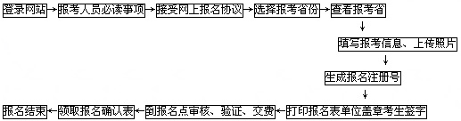 我市網(wǎng)上報(bào)名時(shí)間定于2007年10月23至11月11日每天9時(shí)至21時(shí),考生可登錄http://test.acc.gov.cn網(wǎng)址,按網(wǎng)站的提示和要求如實(shí)填寫本人報(bào)名信息(網(wǎng)報(bào)流程圖見附件)