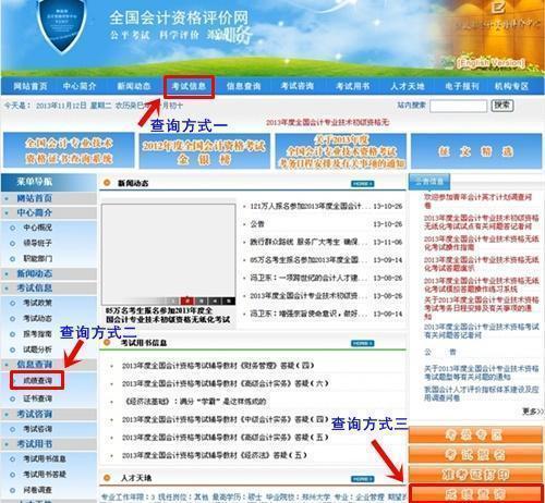 全國2013年會計職稱考試成績統一查詢入口公布,點擊下面的圖片或者官方網址進行查詢: