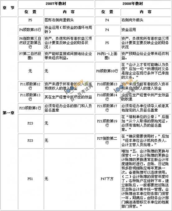 2007、08年《初級會計(jì)實(shí)務(wù)》教材變化對比(第一章)